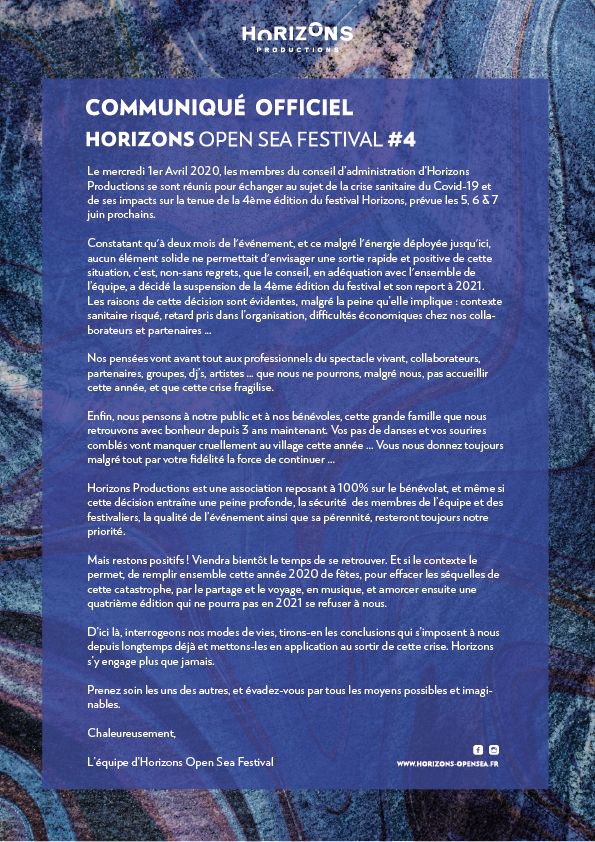 Communiqué officiel – Horizons open sea festival #4